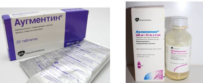 - Аугментин – пенициллин. Доза 30 мг на 1 кг веса 3-4 раза в сутки 1-2 недели. Негативные последствия минимальны.