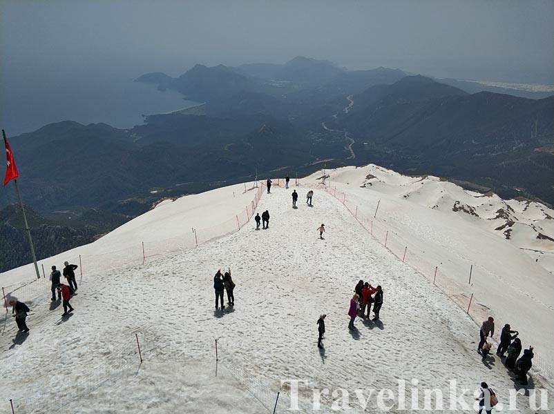Но многие туристы никуда не ездят и ничего не смотрят. Потому что чаще всего для 90% туристов, Турция — это «all inclusive», отель, бар и бассейн. Бухлишко, песни Тимы Белорусских и «Грусный дэнс». Если откроете для себя другую Турцию, то здесь тоже очень классно. Можно ездить самостоятельно, автобусы ходят вдоль всего побережья, либо арендовать машину. Например, если проехать час от пляжа Кемера, то можно попасть к вершине Тахталы, где до июня лежит снег. С ума сойти!