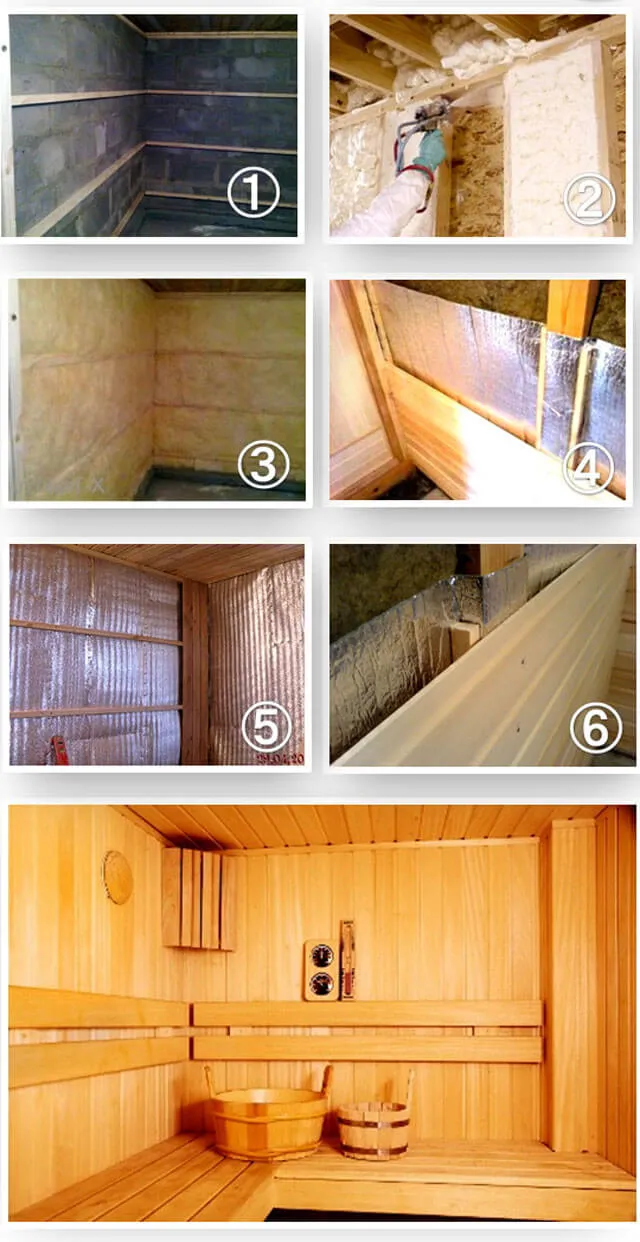 На этапе утепления хорошо будет использовать такой материал, как минеральная вата. Толщина слоя для потолка подойдет и 10 см, укладка происходит перпендикулярно в два слоя. Для утепления стен потребуется толщина от 20 см. Данный этап необходим для сохранения тепла в парилке и экономии на мощности отопительной печи