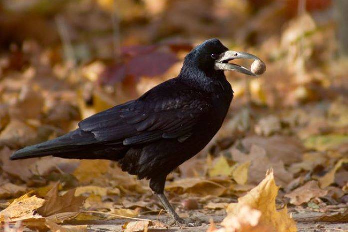 Вороны и грачи питаются различными предметами — от животных до растительности. Они могут быстро и умело определить, где есть пища в округе. Орехи — одна из их любимых пищевых продуктов.