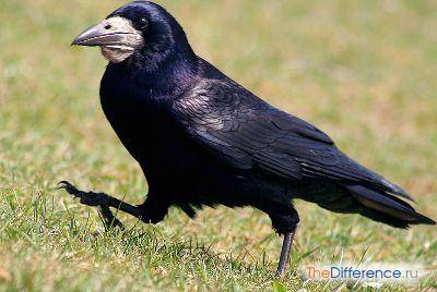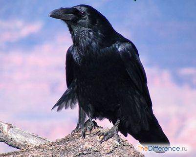 Это тоже черного цвета крупная птица, которая очень похожа на грача (обратите внимание: слово произносится «вОрон» — с ударением на первом слоге). От черной вороны ворон отличается телом более крупного сложения, мощной головой и клювом, который сильнее вороньего
