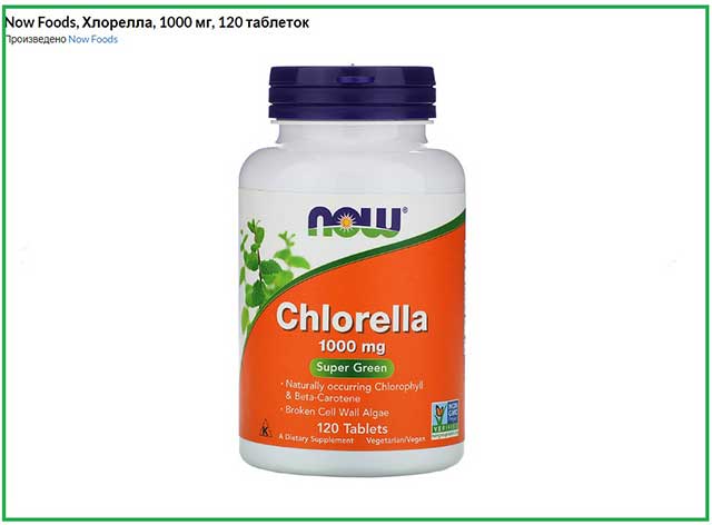 Now Foods, Хлорелла, 1000 мг, 120 таблеток. Стоимость порции (это 3 таблетки) — около 18 рублей. Таблетки небольшие, пить просто.