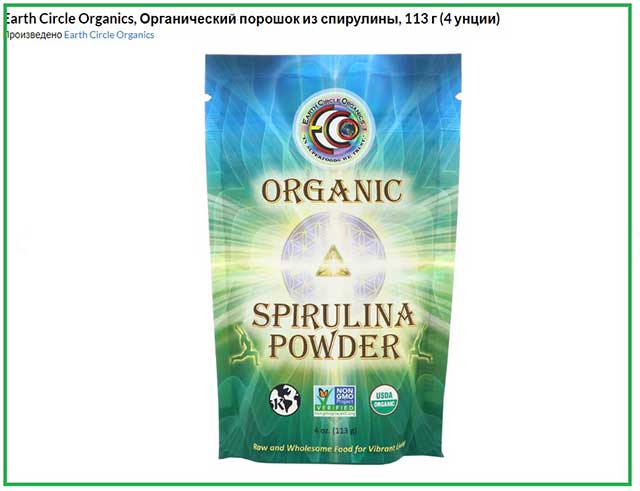 Earth Circle Organics, Органический порошок из спирулины, 113 г. Порция — около 10 рублей. Этот порошок мне нравится больше всего!