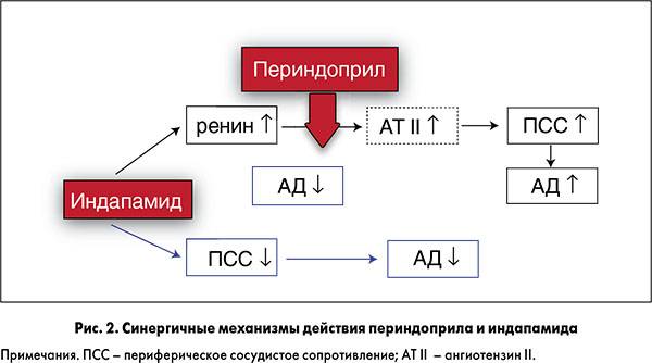 Механизм действия данных веществ разнонаправленный и охватывает сразу несколько звеньев патогенеза артериальной гипертензии. Также они способны потенцировать действие друг друга, благодаря чему усиливается гипотензивный эффект.
