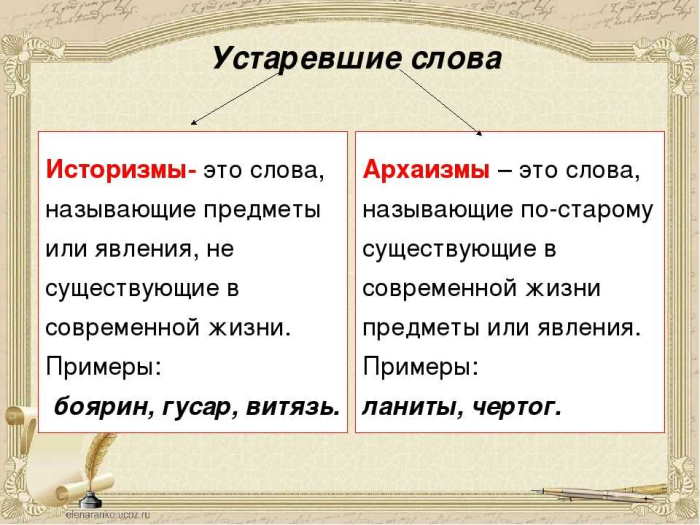 Важно отличать историзмы от архаизмов. Архаизмы — это слова и выражения, которые полностью вышли из употребления и потеряли свою актуальность