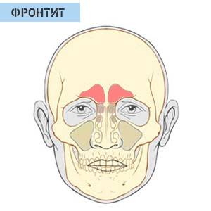 - Фронтит – воспаление фронтальных пазух.