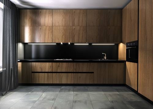 Негативному воздействию чаще всего подвергается фасад кухни, поэтому необходимо подбирать материал устойчивый и отвечающий этим требованиям