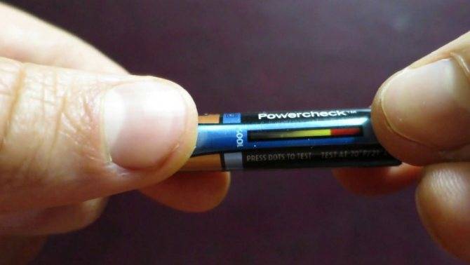 Некоторые модели батареек имеют специальный встроенный индикатор заряда – полоска с определенным количеством светящихся сегментов из термокраски.