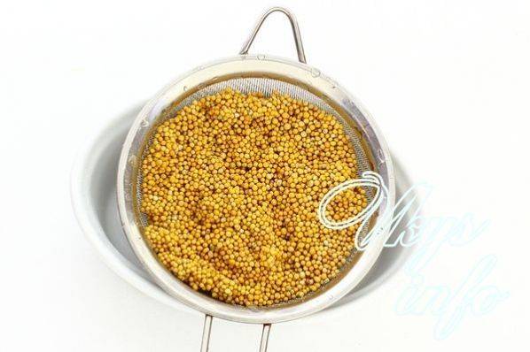 - Замочим в воде на 2 часа горчичные зерна, не забывая постоянно помешивать. Они должны разбухнуть, стать мягкими;