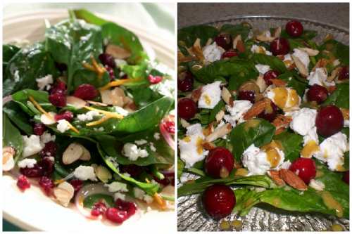 - По горсти свежей клюквы, свежего шпината и миндаля;