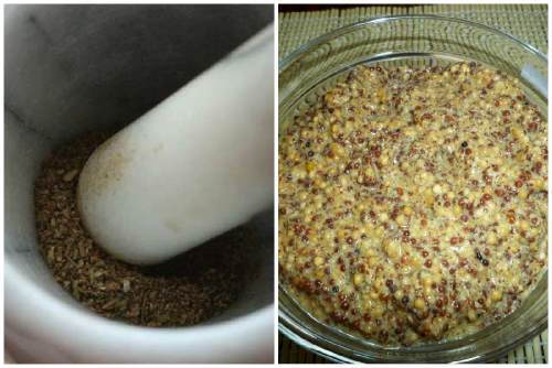 Отберите третью часть зерен из общей массы и измельчите их в блендере. Также можно истолочь семена по старинке – в ступке. Готовая консистенция должна быть пастообразной, однородной.