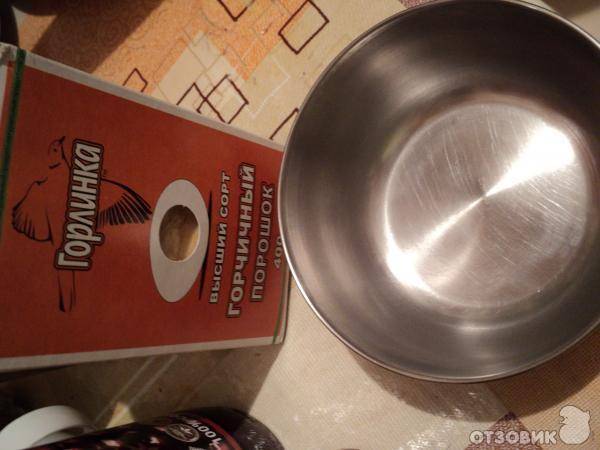 Кипятим воду. В емкость с крышкой желательно (мы берем металлический судок) наливаем стакан кипятка. Затем постоянно помешивая воду всыпаем горчичный порошок. Сыпать его нужно, пока не загустеет То есть на поверхности должны оставаться бороздки и не разравниваться (то есть как заварной крем когда делают).