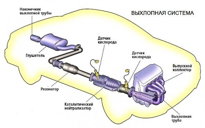 - Выхлопная система – отводит продукты сгорания из двигателя, выполняет функцию доочистки выхлопных газов, регулирует звук работы мотора. Состоит из выпускного коллектора, катализатора и сажевого фильтра (опционально), резонатора, глушителя.