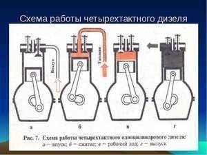 Работа четырехтактного двигателя