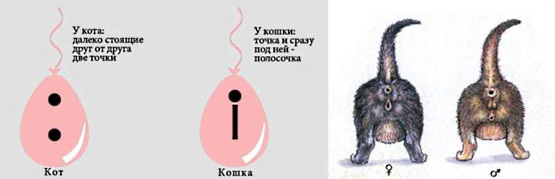 Итак, возьмите аккуратно малыша на ладошку и приподнимите хвостик вверх. У котенка девочки два «места», то есть, анус и половая щель, будут находиться очень рядом, практически без расстояния. А вот у мальчика между анусом и пенисом будет незначительное расстояние, где в будущем будут формироваться яички. Также, как видно на фотографии в галерее, у девочек половая щель имеет более вытянутую вертикальную форму, как щелочка, а у мальчиков на этом месте круглое отверстие. То есть, у котиков гениталии будут условно иметь форму «:», а у кошечек – «i», как показано на видео от канала Муркотэ.
