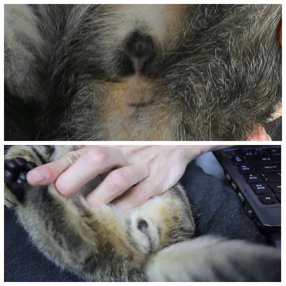 Итак, возьмите аккуратно малыша на ладошку и приподнимите хвостик вверх. У котенка девочки два «места», то есть, анус и половая щель, будут находиться очень рядом, практически без расстояния. А вот у мальчика между анусом и пенисом будет незначительное расстояние, где в будущем будут формироваться яички. Также, как видно на фотографии в галерее, у девочек половая щель имеет более вытянутую вертикальную форму, как щелочка, а у мальчиков на этом месте круглое отверстие. То есть, у котиков гениталии будут условно иметь форму «:», а у кошечек – «i», как показано на видео от канала Муркотэ.
