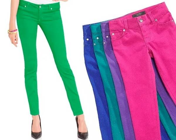 Модель для женщин: основная особенность — многообразие. Для пошива женских джинсов употреблены ткани, окрашенные в самые разнообразные цвета и оттенки (также и вызывающие, яркие и броские).