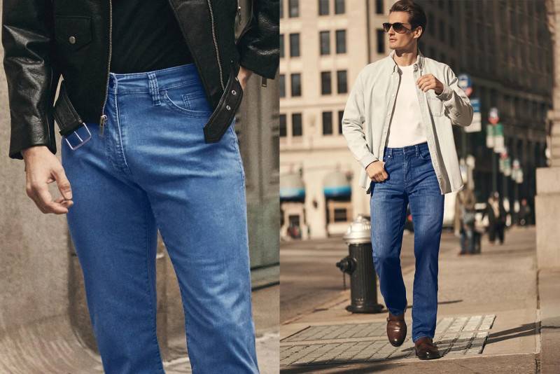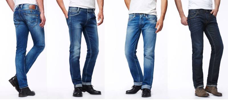Для мужчин джинсы являются предметом базового гардероба, который можно носить с пиджаком и туфлями. Поэтому они сдержаннее, нейтральных оттенков, а потертости если и есть, то минимальные.