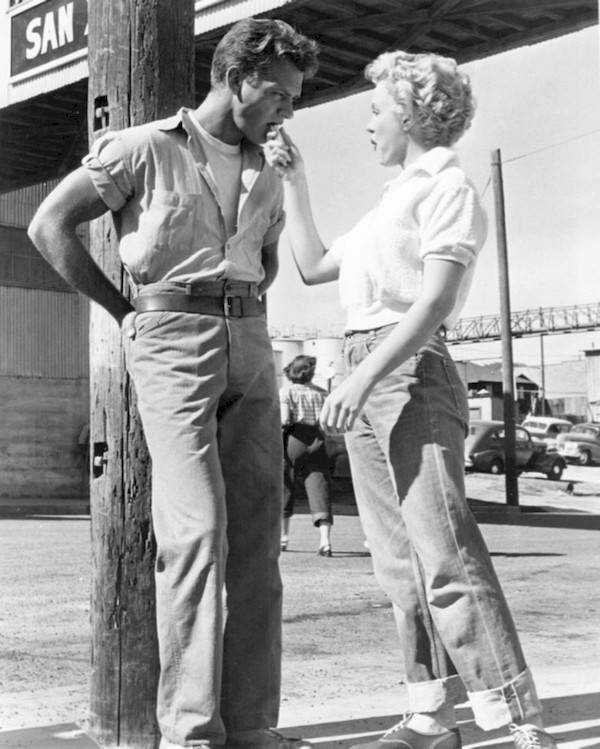 Всемирно известная Мерлин Монро в разных моделях джинс. Одни застегиваются слева направо, другие справа налево. А это современные джинсовые брюки:
