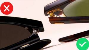 Особенностью поддельных очков часто является способ крепления дужек на клей при отсутствии болтов.