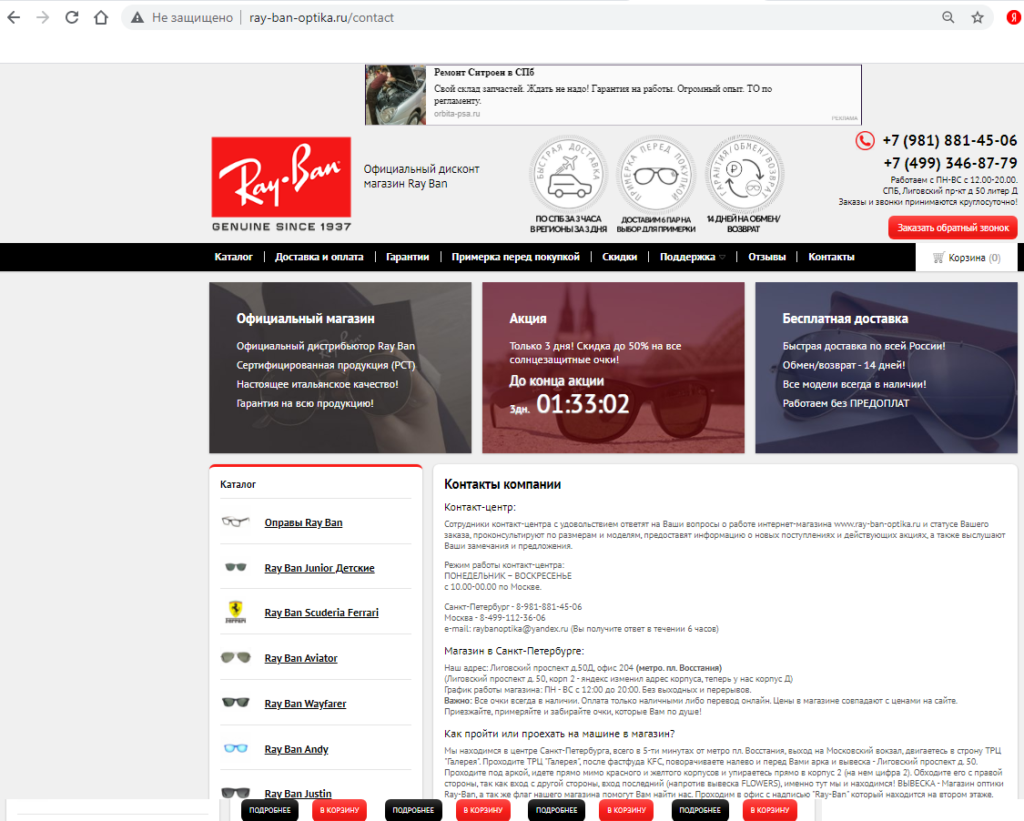 Если покупатель обнаружил, что приобрел поддельные очки Ray-Ban, то в течение гарантийного срока необходимо обратиться к: