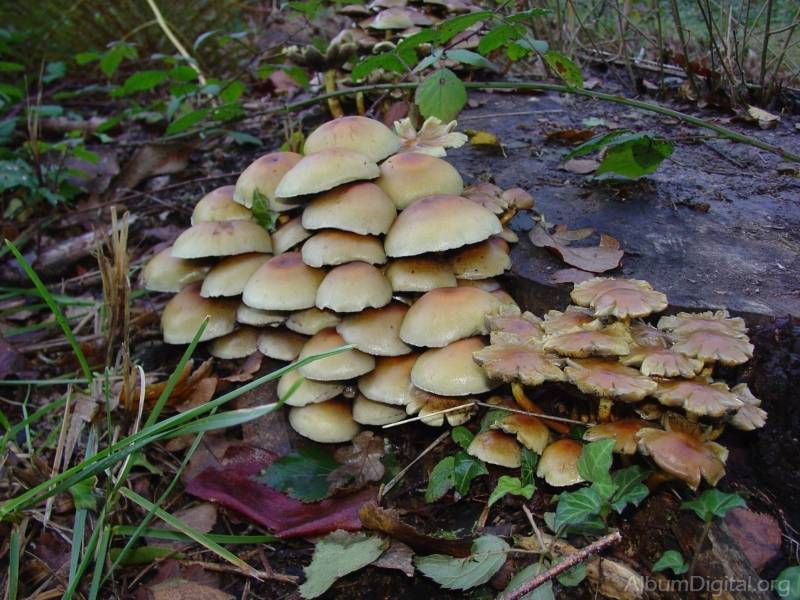 | Опят хи-мейери | Легко опознать по фото со светло-желтыми шляпками. | Не имеет ложных двойников. | Растут на лугах и полянах. | Отравление галериной может быть опасным. |