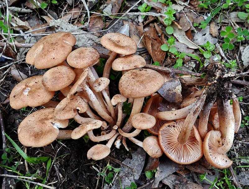 Компактные, и собраны в большие группы. Высота ножки не превышает 15 см, а шляпка достигает диаметра в 7 см.