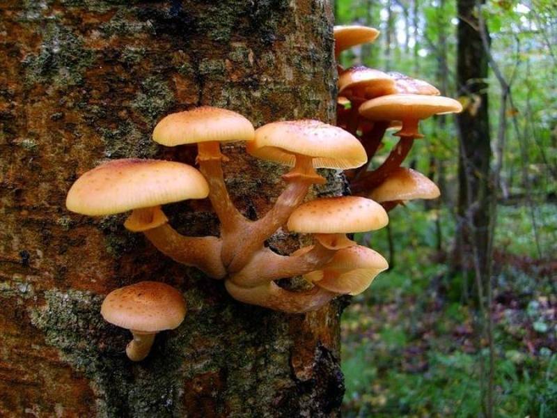 Эта разновидность считается самой распространенной. На каких деревьях растут, где растут опята и сколько — знать полезно. Ведь встретить их можно на срубах или стволах деревьев в лиственном лесу. Плоды компактные, а высота ножки не превышает 6 см.