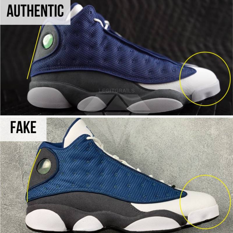 Another detail that the Jordan 13 Flint replica got wrong is the white pods on the midsole, which are incorrectly shaped. We also advise you to be wary of any loose threads sticking out, as they definitely raise suspicion about the authenticity of the pair.