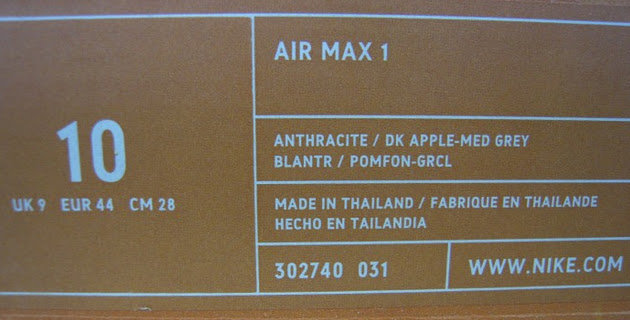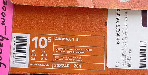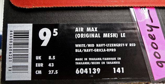 Этикетка должна касаться левой нижней части коробки. Подавляющее большинство кроссовок Nike Air Max это кроссовки в мужских размерах, поэтому Nike не использует термин «Mens» в названии модели
