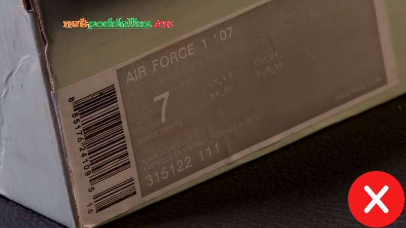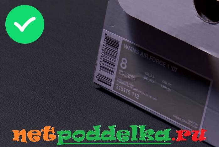Фальшивку можно найти по этикетке. На наклейке обязана быть приведена основная информация о кроссовках Найк. Любые орфографические ошибки на этикетке недопустимы.