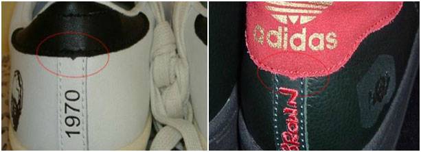 Логотип в настоящих кроссовках выполнен тиснением, а в поддельных – наклеен или просто нарисован