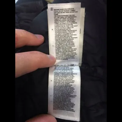 Затем есть длинный список на многих языках о том, как ухаживать за одеждой. Эта информация занимает около семи или восьми страниц.
