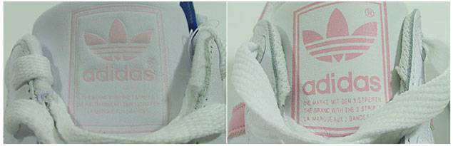 Качество выполнения логотипа на настоящих Адидасах, состоящего из всемирно известных трех полосок, является очень высоким. Он либо напечатан, либо вытиснут с четкими краями, без размытости, используя яркие, но не кричащие краски.