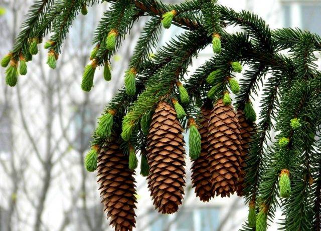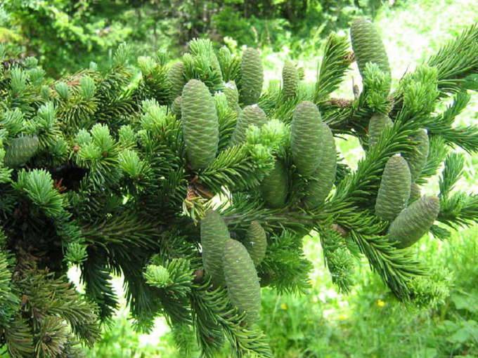 В отличие от пихты, у ели конусы стоят вертикально на ветвях, что является еще одной отличительной особенностью.