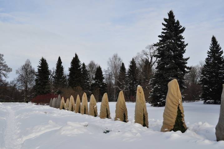 Уход за елью зимой не так уж и сложен — необходимо в первую очередь следить за тем, чтобы ветки не были перегружены снегом. Они даже могут отсоединиться от груза. В первый год развития растения необходимо укрыть. Необходимую защиту обеспечит импровизированный «вигвам» из нескольких столбов, которые привязываются сверху. Получившуюся «избушку» засыпают еловыми ветками или накрывают снаружи пленкой, чтобы снизить снеговую нагрузку и сделать ее более равномерной.