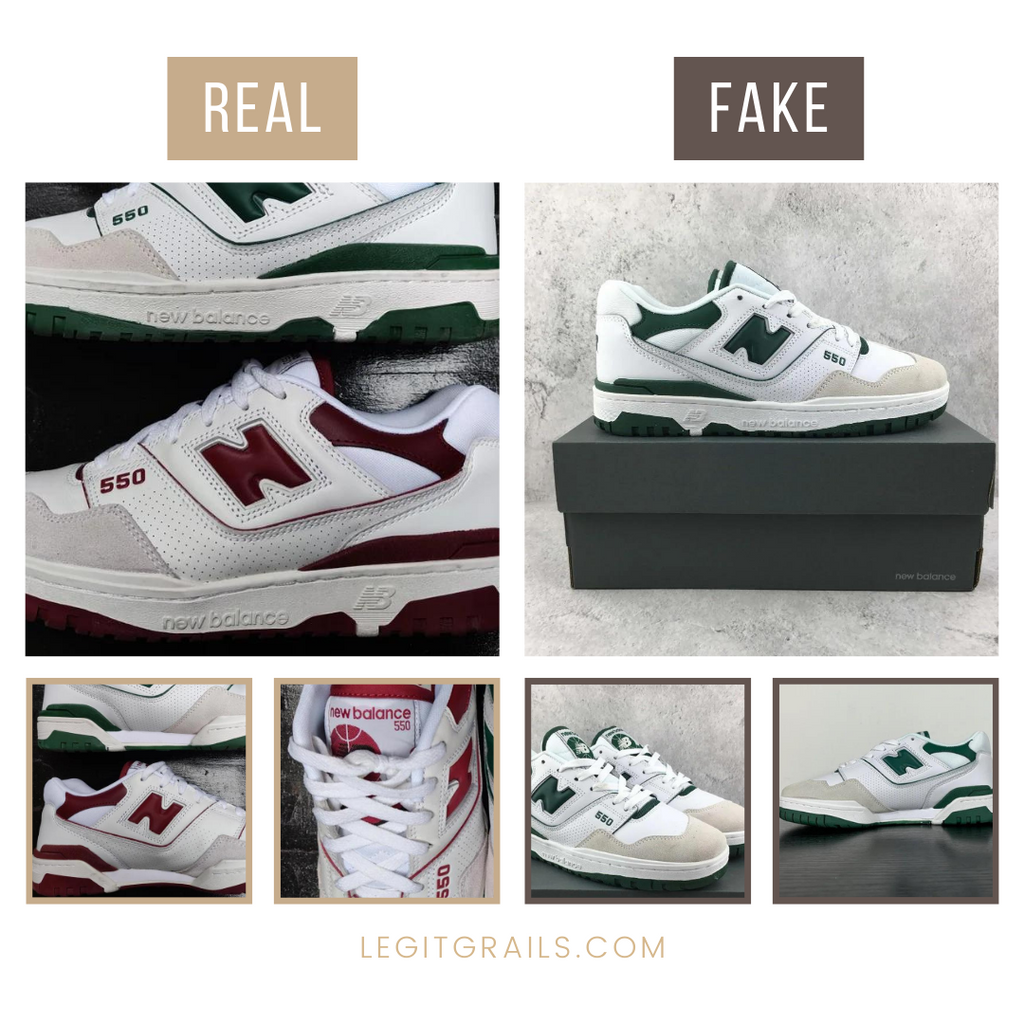Counterfeit New Balance 550s are slightly diminutive compared to their authentic counterparts. This reduction is not limited to overall size but rather extends to the shoe’s proportions, causing a subtle shift in sizing; for instance, an 8.5 might manifest as an 8. To establish a benchmark, consider comparing the sole of your New Balance 550 with that of an authenticated New Balance sneaker of the correct size. This visual comparison will offer a clearer perspective on the authenticity of the shoe in question.A shoe authenticator will always look at the overall material quality, the stitching, and the way the shoe is built. Sometimes, the replicas are so bad you don’t even have to consider going further than just a simple look.