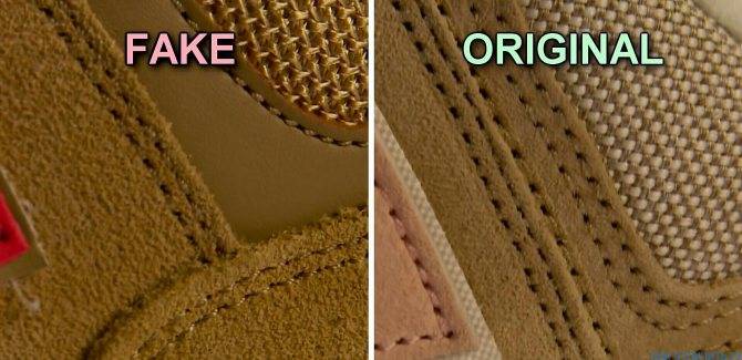- Оригинальные швы ровные, очень чистые, все детали верха удвоены или утроены. Производители подделок иногда удваивают простые швы.