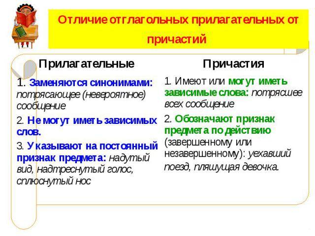 Чем отличаются причастия от прилагательных в русском языке?