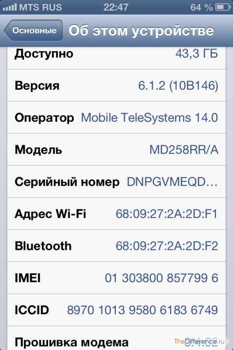 - Найдите строчку Model и рассмотрите код: две последние буквы указывают, для какой территории предназначался iPhone. У легитимных русских версий стоят литеры RS.