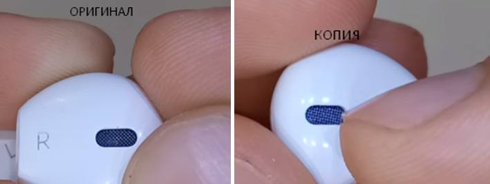 Отверстия диффузоров у оригинальных наушников полностью симметричны.