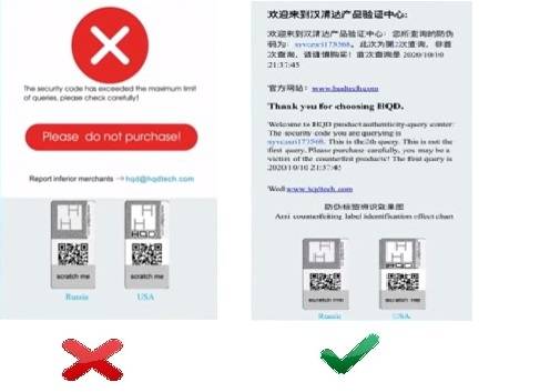 Подделок HQD очень много, компания принимает различные меры для борьбы с ними, однако не совсем успешно. На сайте периодически обновляются правила о том, как отличить оригинал. Для того, чтобы потребитель мог проверить HQD на безопасность коробка содержит на себе QR-код, являющийся гарантией подлинности.