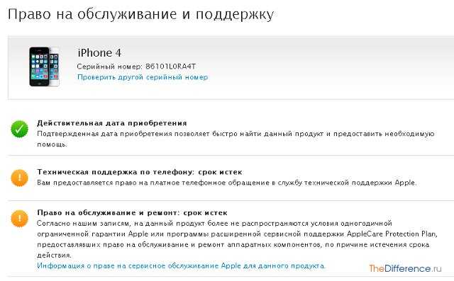 Если смартфон оригинальный, то сайт компании Apple выдаст вам информацию о модели и сроках гарантии.