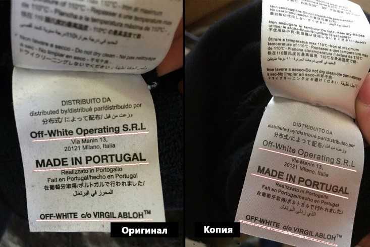 Некоторые производители научились умело подделывать товары разных брендов, в т. ч. и «Офф-Уфйт», но если знать, на что смотреть при покупке той или иной вещи, то всегда можно самостоятельно отличить оригинал от фейка.