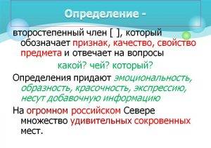 Определение — это подмножество, которое указывает на атрибут объекта и отвечает на вопрос.