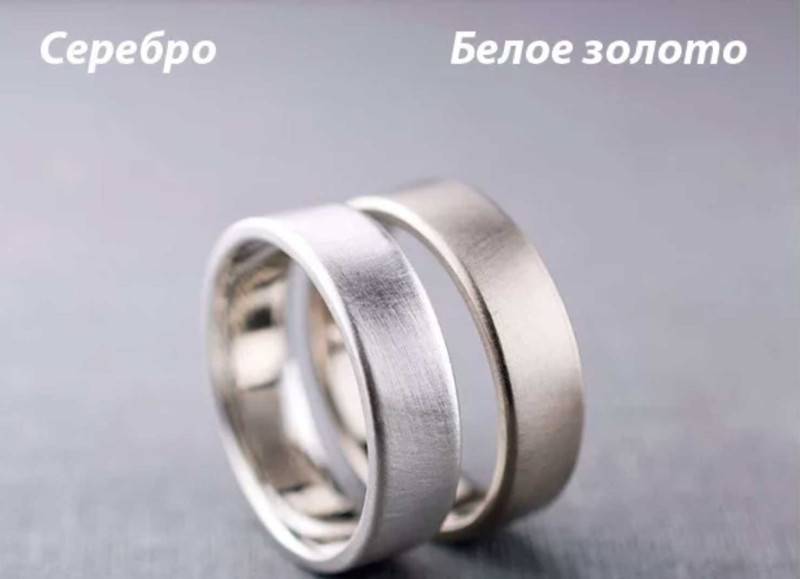 - Белое золото отдаленно имеет желтоватый оттенок. Серебро — серое, без характерного блеска.