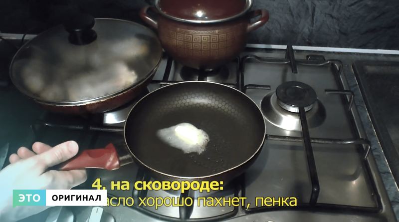 Можно провести еще такой эксперимент. Бросить кусочек сливочного масла на разогретую сковородку. Хорошее качественное масло будет плавиться равномерно, много белесой пены и отделяющейся желтой фазы оно не образует.