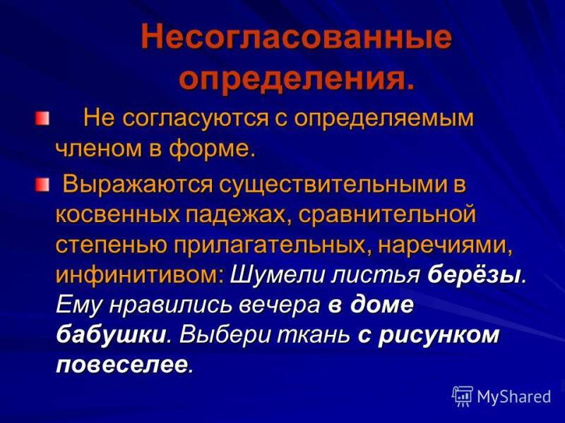 Школьники обычно затрудняются в ответе, чем отличаются согласованные от несогласованных, путаются в разграничении определений, находящихся в несогласовании с главным словом, от дополнений и обстоятельств как в классе на уроке, так и при выполнении домашних упражнений. Эти члены предложения оба в косвенных падежах и формально ничем не отличаются. Отличия можно найти с помощью синтаксиса: