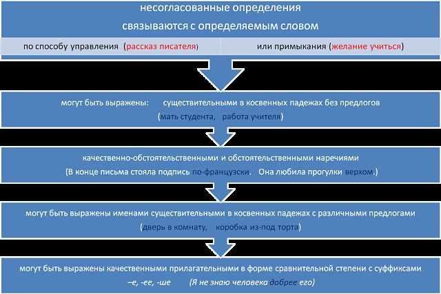 Школьники обычно затрудняются в ответе, чем отличаются согласованные от несогласованных, путаются в разграничении определений, находящихся в несогласовании с главным словом, от дополнений и обстоятельств как в классе на уроке, так и при выполнении домашних упражнений. Эти члены предложения оба в косвенных падежах и формально ничем не отличаются. Отличия можно найти с помощью синтаксиса: