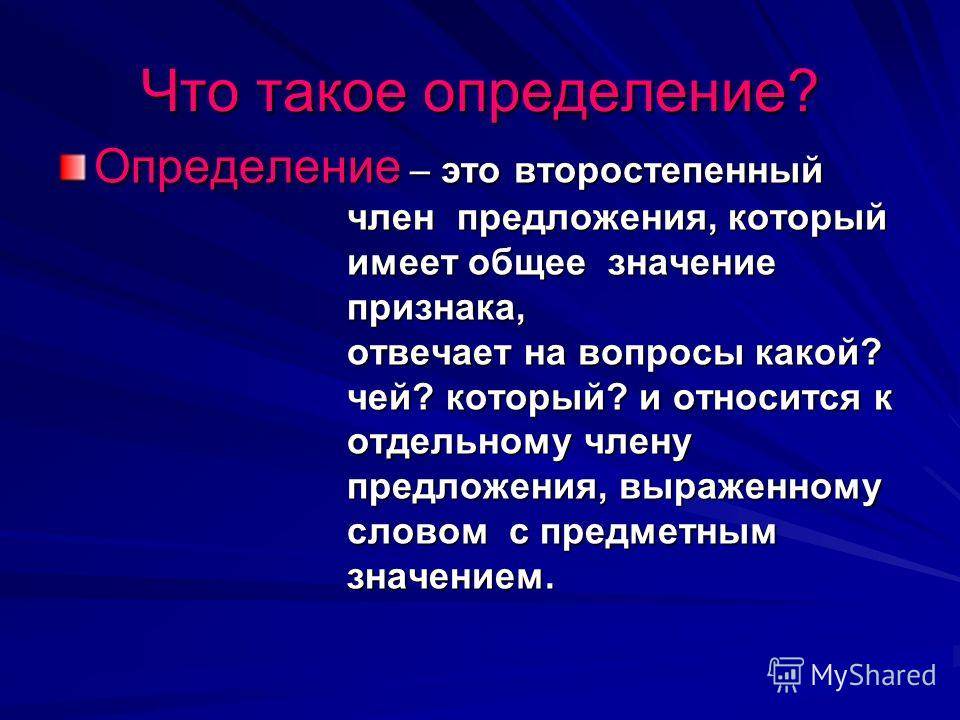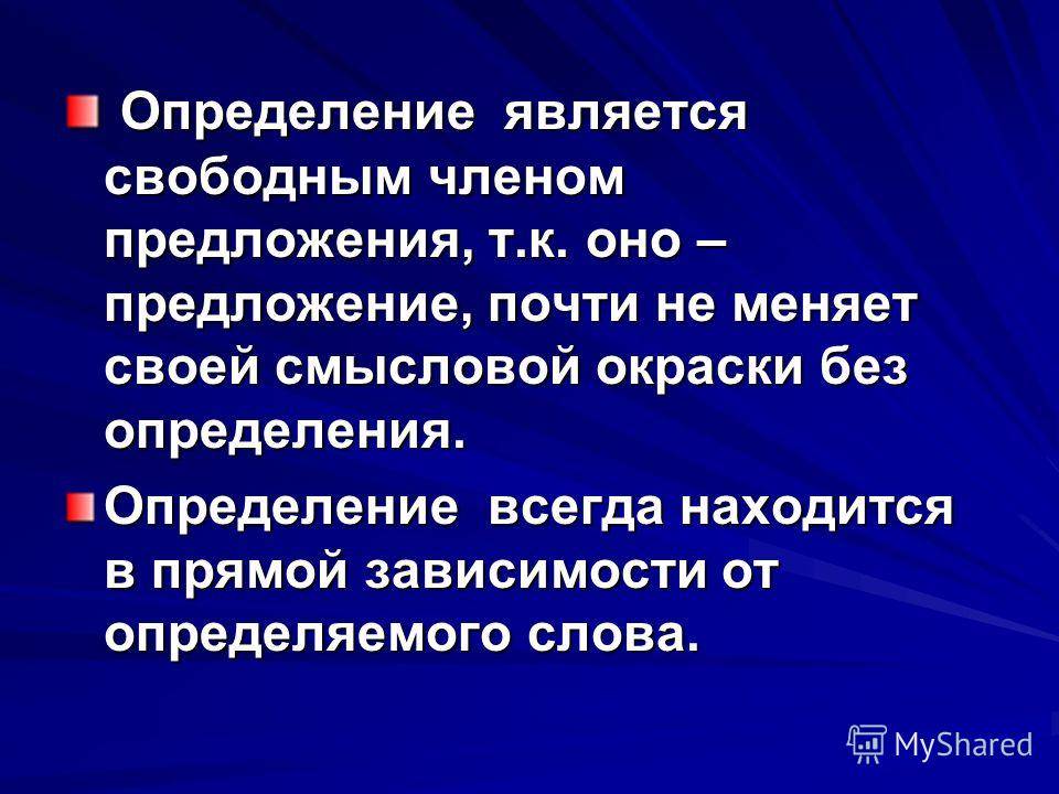 Определение – это второстепенный член предложения, обозначающий признак предмета, лица или явления по отношению к определяемому слову зависит пунктуация в предложении.